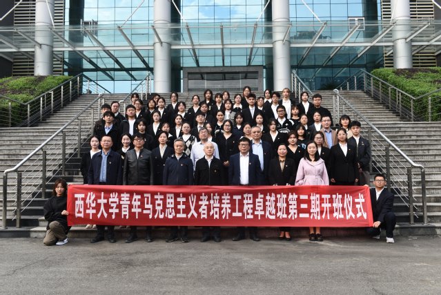 张力向“青马工程”卓越班第三期授旗并讲话。他指出,“青马工程”培训班是加强青年大学生思想引领的重要阵地,学校通过持续深化改革和提质增效,“青马工程”的培养体系更加完备,培养模式更为规范,政治引领的功能效应愈发凸显,为党组织培养和输送了一批具有忠诚的政治品格、浓厚的家国情怀、扎实的理论功底和突出的能力素质的青年政治骨干。他对新一期的青马学员提出三点希望:一是坚定信念、对党忠诚,做加强理论武装的模范表率;二是勤奋学习,刻苦钻研,做营造优良学风的模范表率;三是勇于担当、踔厉奋发,做投身强国建设的模范表率。