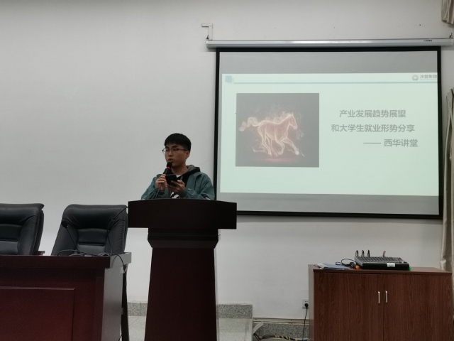 2019125日下午16点,能源与动力工程学院在第一教学楼B201教室举办了西华讲堂。本次讲堂邀请了现任沐盟集团分公司首席投资分析师、副总经理的朱冕君,为同学们分析目前的产业发展趋势以及大学生就业形势。能源与动力工程学院团委学生会全体成员参加此次活动。