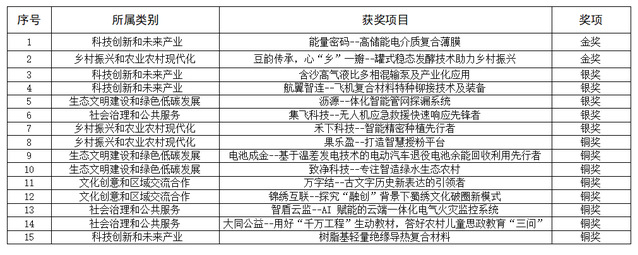 获奖项目名单
