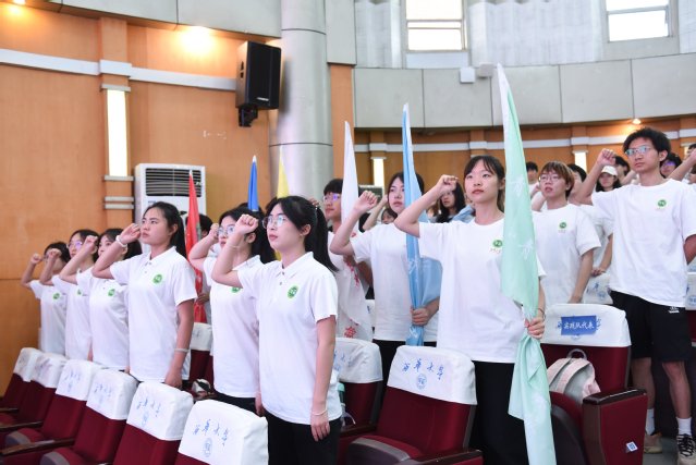 仪式上,校团委工作人员介绍了2024年暑期社会实践活动总体安排,管理学院李思琪、美术与设计学院左怡、建筑与土木工程学院吴昊彤分别作为学院团委、指导教师、实践队代表进行交流发言。全体参会学生庄严宣誓出征。