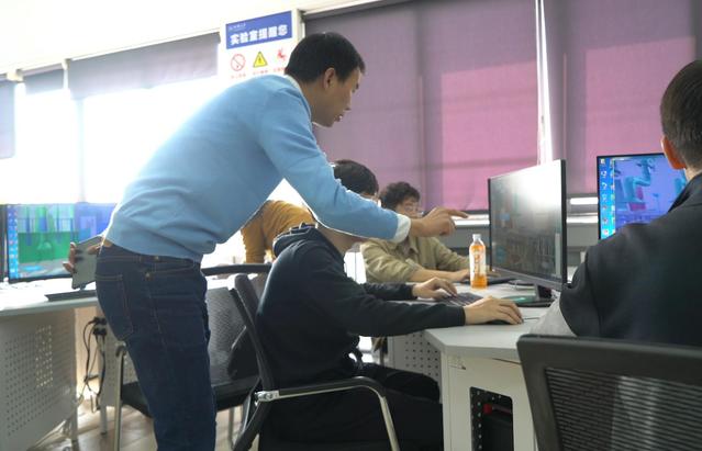 图为彭必友指导学生VR实验操作
