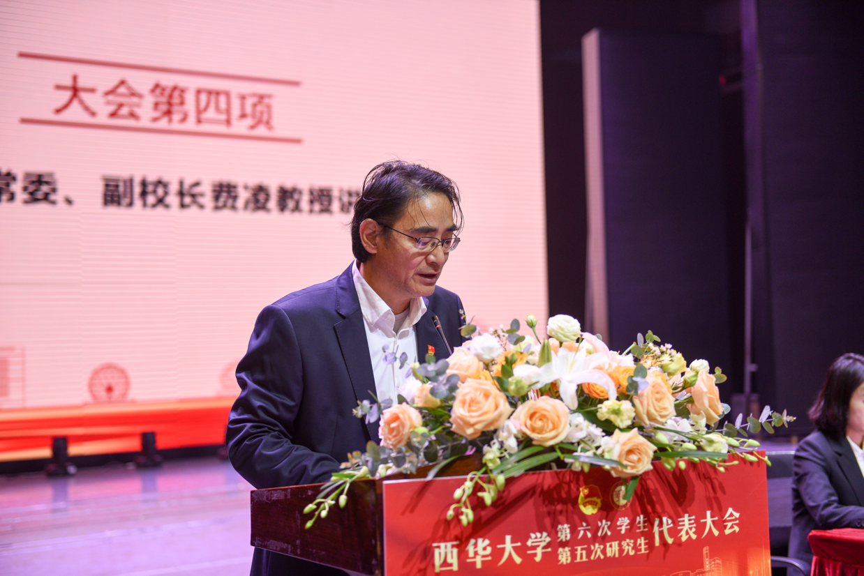图为 党委常委、副校长费凌教授讲话