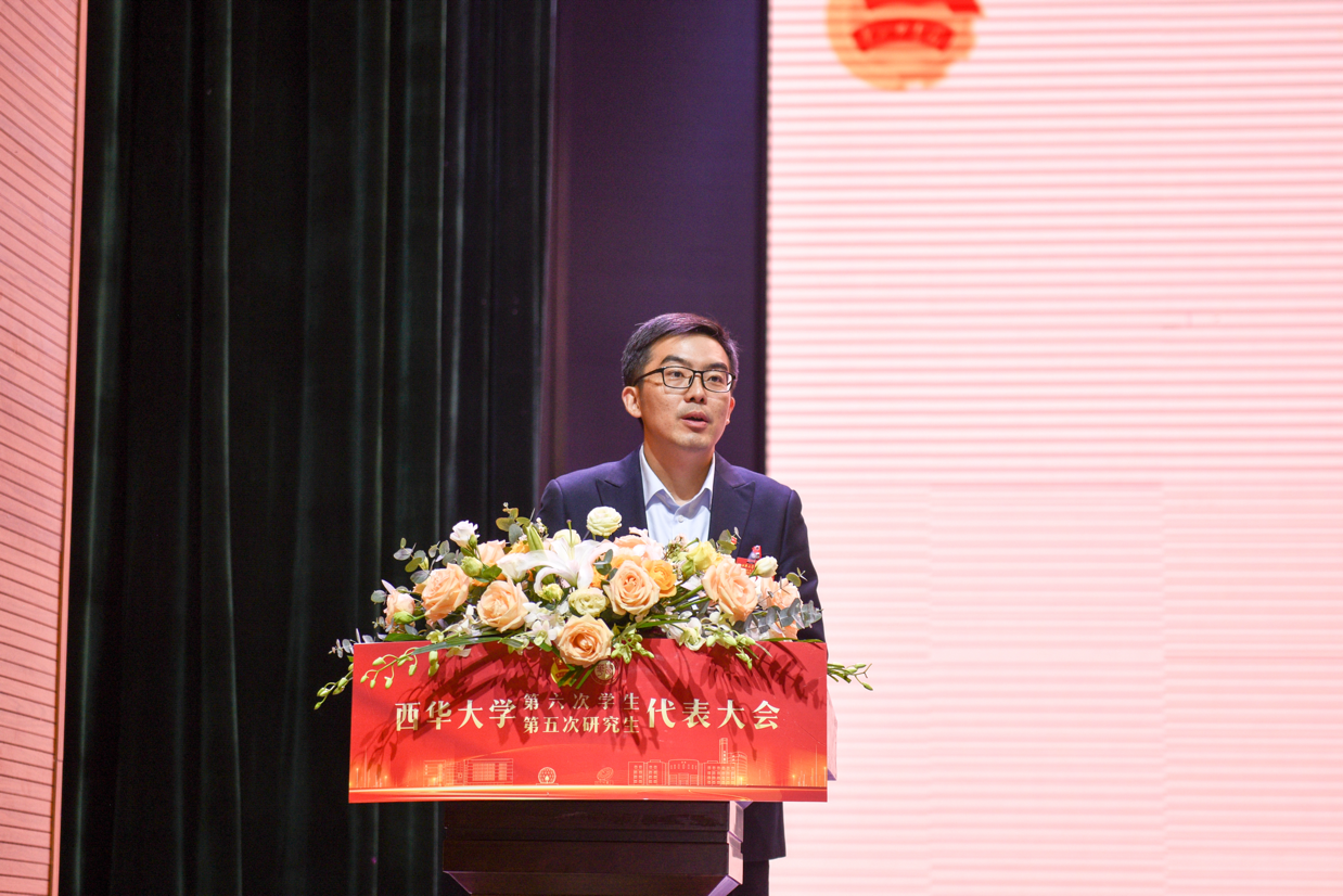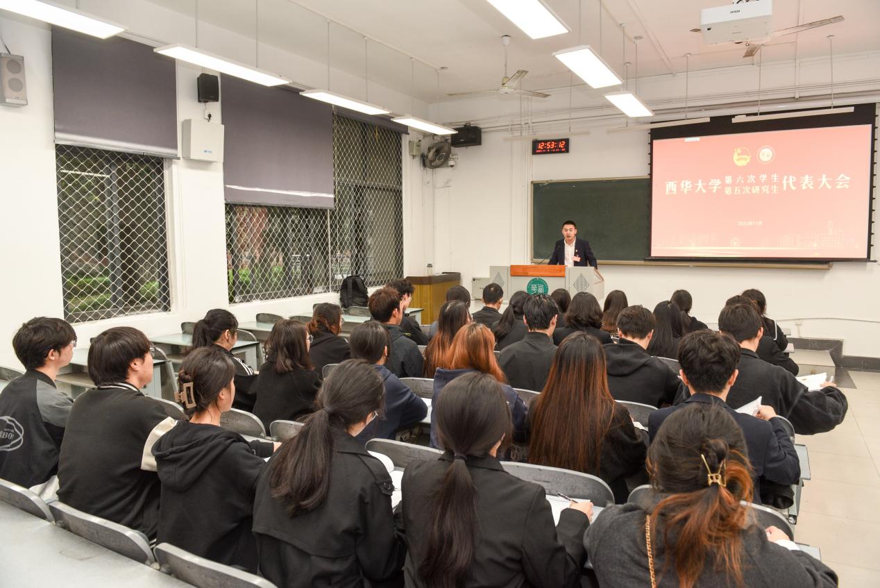 2024年11月9日,伟德国际1946源于英国第六次学生代表大会、第五次研究生代表大会在艺术大楼大剧场成功举行。学校党委常委、副校长费凌、党委常委、宣传部部长王莉、成都市学联执行主席唐珩蓝、学校党委学生工作部部长罗世韡、教务处处长蒋珍菊、研究生院副院长苏文明、校团委书记石元鹏、校团委副书记王映玥,以及全校303名学生代表、98名研究生代表参会。成都市学联和30余所兄弟高校学生会组织对大会的胜利召开表示祝贺。