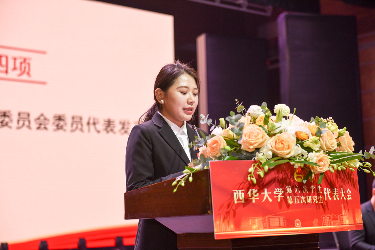 图为 研究生会第五届委员会委员代表讲话