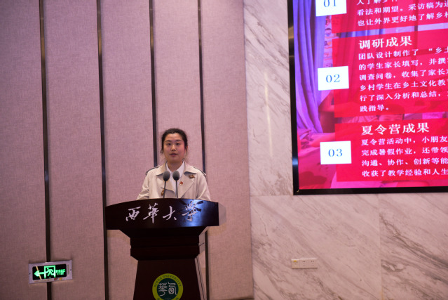 在交流展示环节,优秀实践项目负责人从选题背景、项目设计、活动内容、实践成果、总结反思等角度,全面展示实践团队风采。体育学院实践团前往巴中市大和乡为村民们进行公益体质测试,指导养成健康生活习惯;电气与电子信息学院“旌旗小队”实践团重走习近平总书记来川视察足迹,走进广元市翠云廊古蜀道开展历史文化传承、生态文明建设、推动乡村振兴等主题考察;航空航天学院“种星星的人”实践团赴达州市宣汉县开展特色农产品直播带货活动,助力农产品销售和农民增收;应急管理学院“童心童行”实践队走进彭州市南津社区开展应急科普活动,引导儿童学习和掌握应急知识,提高面对突发事件时的自救、互救能力。