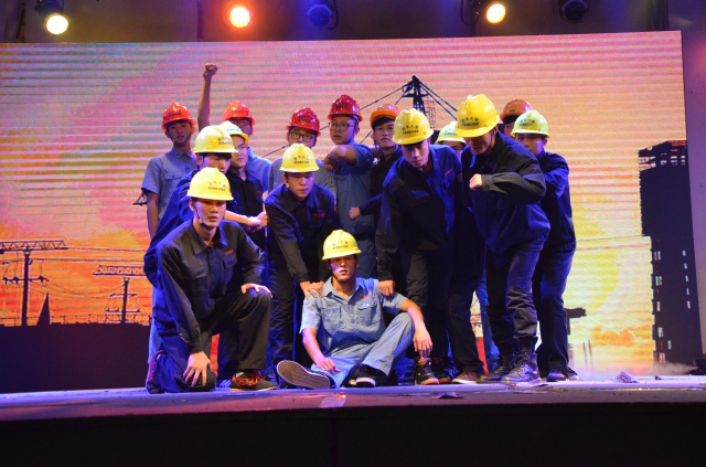 身为土木人当然要展现土木人的精神,新生男子舞蹈队表演的《走在建设的路上》将晚会推向了高潮,所有表演队员身着工程师服装,头戴安全帽,以舞蹈形式畅想工程师建设、发展的场景。此外,朗诵,原创歌曲,情景剧等节目形式赢得了现场观众的阵阵掌声。