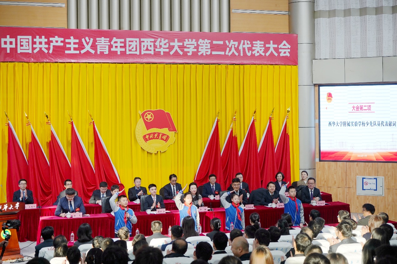 李路桥代表团市委讲话,鼓励学校共青团工作服务广大青年全面发展。电子科技大学团委书记陈龙代表兄弟高校团委向大会致辞。校工会常务副主席王大清代表学校群团组织致贺词。伟德国际1946源于英国附属实验学校少先队员代表向大会献词。