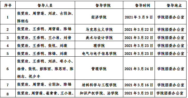 为贯彻落实共青团中央、教育部、全国学联关于共青团深化改革工作部署,促进我校共青团改革工作统筹推进、抓好落实、重点突破,有力推进全校共青团改革工作纵深发展。2021年3月9日至4月30日,我校团委组成专门督导调研工作组,将就我校共青团深化改革工作进行为期2个月的专题调研。