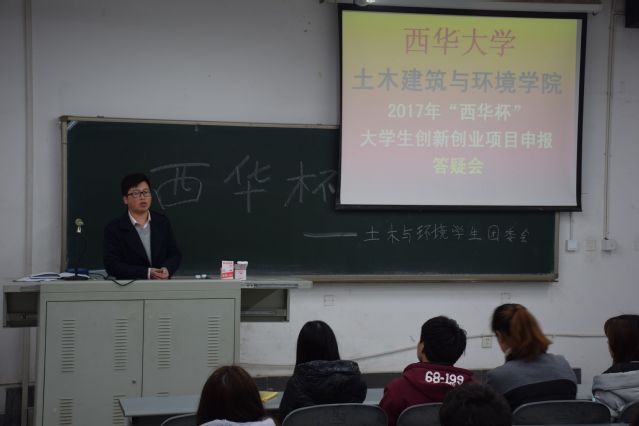 为切实推动高校共青团深化改革,逐步推行高校共青团“第二课堂成绩单”制度,提高学生综合素质,2017年度“西华杯”大学生创新创业项目申报工作在我校顺利启动。为了让更多学生了解和参与“西华杯”,组织好本次申报工作,土木建筑与环境学院团委于3月16日14:00,在6C112为同学们举行了一次以答疑为目的的交流会。团委书记温超老师亲自为同学们解疑答惑。15、16级各班学习委员及有兴趣申报的同学都参加了本次答疑会。