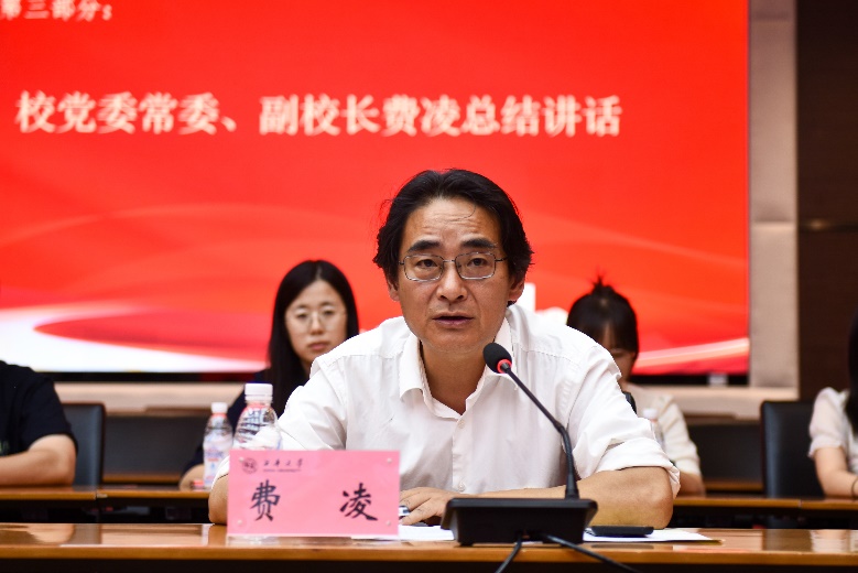 座谈会最后,由校党委常委、副校长费凌作总结讲话。费校长向全体与会人员交流了三点意见:一是要深刻领会习近平总书记重要回信精神和寄语青年重要讲话精神的丰富内涵,坚定新时代青年听党话、跟党走的政治自觉;二是要准确把握新时代青年工作的实践要求,筑牢共青团为党育人的使命担当;三是要奋力书写新时代青年的奋进答卷,争做中国式现代化建设的生力军。会议最后,费校长对与会学生代表发出殷切希望,希望作为学生干部、新时代青年,要以学字当先,在仰望星空的同时,一定要脚踏实地,最后才能实现伟大理想。