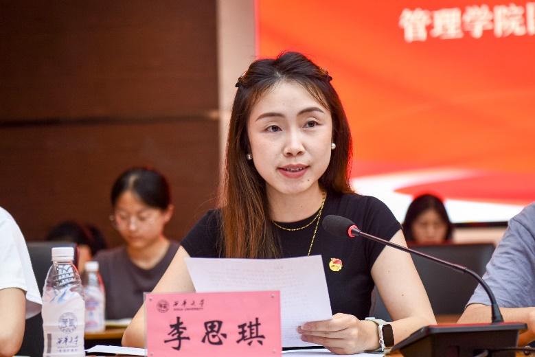 学院团委书记代表,机械工程学院团委书记李忠钢、管理学院团委书记李思琪先后谈到,在深入学习了习近平总书记给谢依特小学戍边支教西部计划志愿者服务队队员重要回信精神和习近平总书记寄语青年重要讲话精神后,作为学院团委书记,应将此次讲话精神落实到实际行动之中,牢牢把握为党育人、积极推动学院“青年大学习”,做好青年工作,将“小我”融入到“大我”之中。