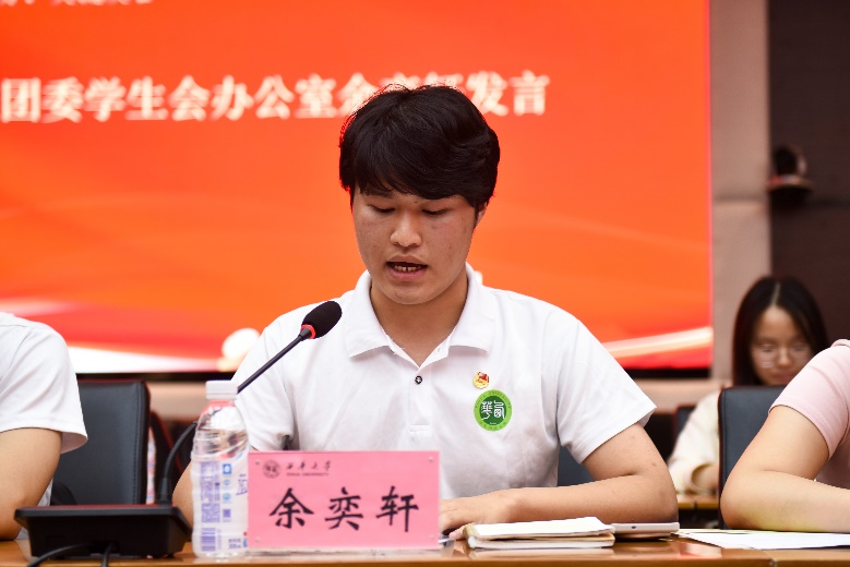 学院团委书记、校级学生组织负责人、“青马工程”卓越班学员及青年学生代表作交流发言。并纷纷表示将牢记嘱托,坚定理想信念,厚植家国情怀,练就过硬本领,发扬奋斗精神,用实际行动为中国式现代化挺膺担当。
