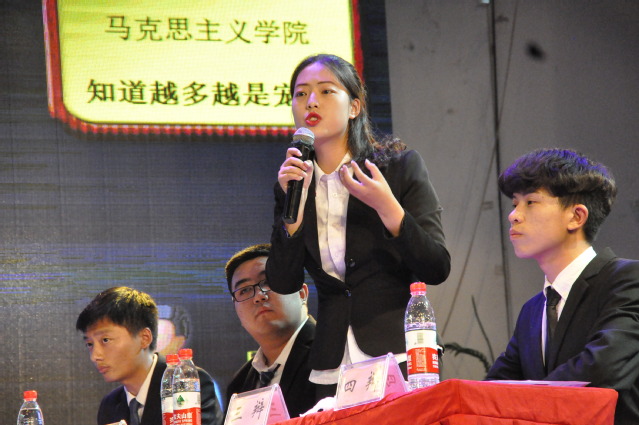 紧接着,第二场工商管理学院与马克思主义学院就冠亚军展开激烈角逐。正方为工商管理学院,其辩题为:知道越多越是孤儿。反方为马克思主义学院,其辩题为:知道越多越是宠儿。之后主席介绍了双方辩手及评委。首先由正反方一辩进行立论,正反方四辩分别进行盘问,接着由正反方二辩进行陈述,然后进入最为激烈的自由辩论环节,其中工管学院使用奇袭机会为盘问,马克思主义学院使用奇袭机会为申论。正方的同学们,字字珠玑,侃侃而谈,概括能力极强,就事论事,直击要点,有条有理的总结自己的论点,找出对方辩手的症结,不仅是结辩,更像是一席演讲。