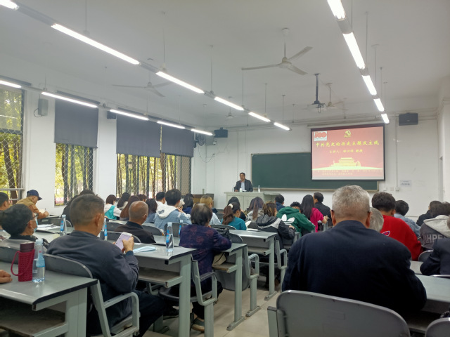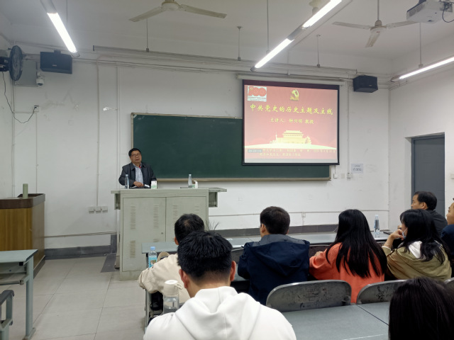 在本场讲座中,钟兴明教授围绕“中国共产党为中国人民谋幸福,为中华民族谋复兴”的主题和“中国共产党人带领中国人民不懈奋斗的历史进程”为主线展开讲解。首先,通过回顾中国共产党走过的百年历程,钟教授深入分析了中国共产党人把自己完全融入到为中国人民谋幸福、为中华民族谋复兴的奋斗之中,把满腔热忱完全投入到以人民为中心的发展中。从中国共产党成立,到建立中华人民共和国,再到实行改革开放,一代代共产党人不断推动党的建设,坚持从群众中来到到群众中去。从1921年党的一大到现在,中国共产党始终坚持全心全意为人民服务的宗旨。最后,在理论学习方面,钟教授建议广大师生要深入学习马克思列宁主义、毛泽东思想、邓小平理论、“三个代表”重要思想、科学发展观、尤其要学好习近平新时代中国特色社会主义思想,多阅读马克思主义经典著作,进一步学习和把握理论的精神内涵,坚持用马克思主义的立场和方法指导实践。