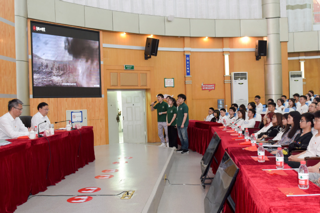 接着,在会上开展了一场生动的党史学习教育课,通过木芽声剧社同学们的配音作品《这盛世如你所愿》,带领与会师生一起去走进那段峥嵘岁月。