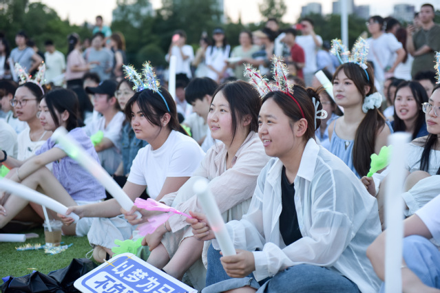 6月15日晚,“青春启航 逐梦远行 ”毕业季草地音乐会在临江苑操场上演。校党委常委、副校长费凌,校团委负责人与2000余名师生共同观看演出。