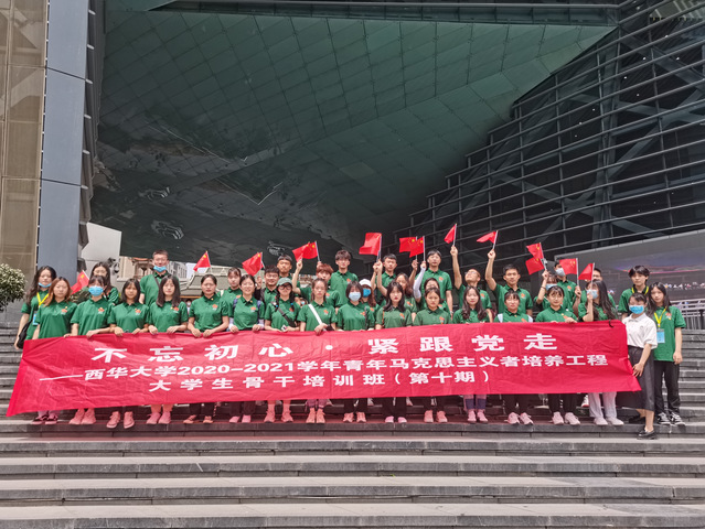 2021年5月19日,我校青马学校第四期大学生骨干培训班学员赴成都博物馆开展“不忘初心 紧跟党走”主题社会实践活动。