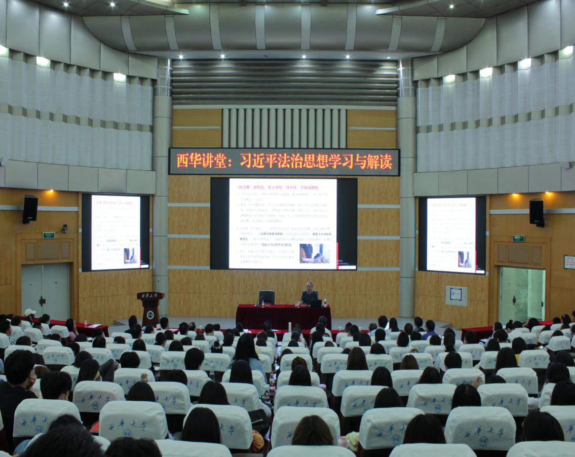 为进一步推进习近平法治思想在高校落地生根学实,帮助师生学习党史,领会习近平新时代中国特色社会主义思想的深刻内涵,2021年5月19日,知识产权学院和法学院特邀教育部“长江学者奖励计划”特聘教授、全国十大杰出青年法学家、四川大学法学院院长左卫民教授在第四教学楼报告厅作主题为“习近平法治思想学习与解读”的西华讲堂。讲座由校党委书记余孝其主持。