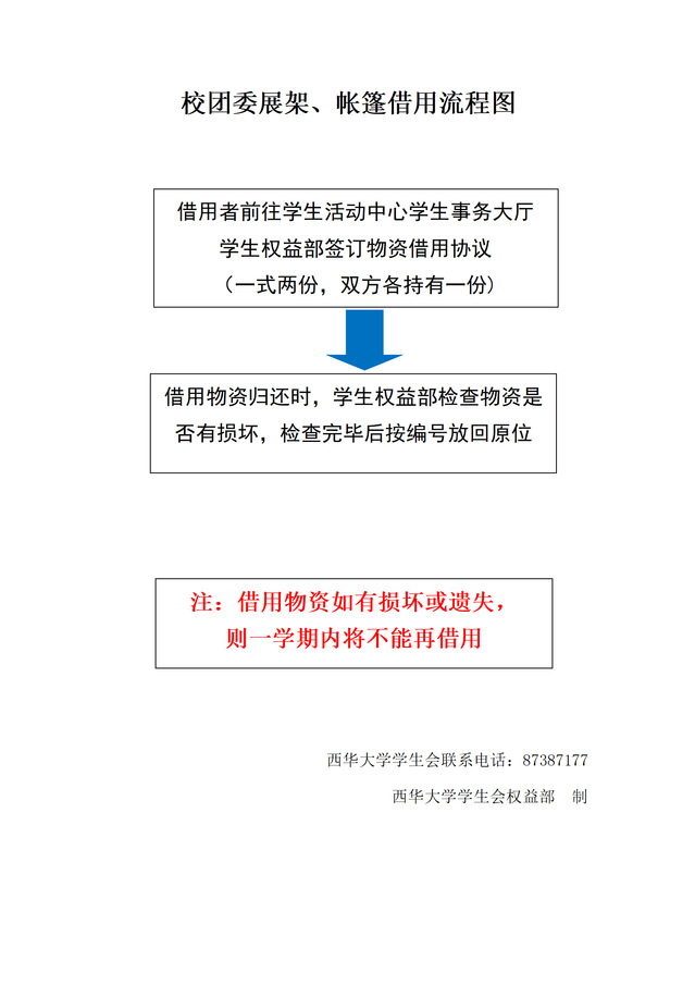 校团委展架、帐篷借用流程图