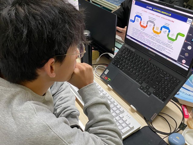 图为 同学在寝室观看学习