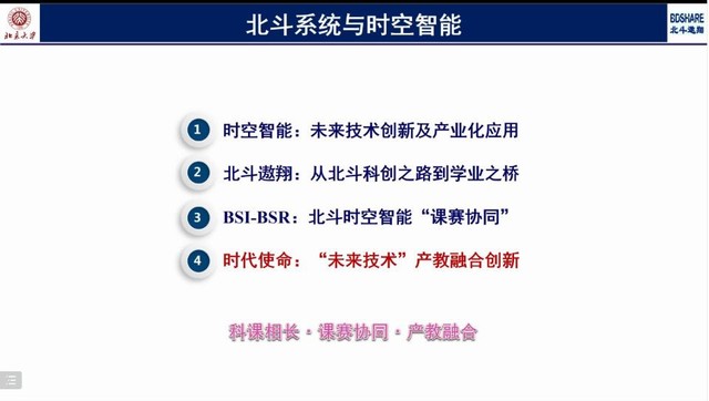 讲堂伊始,陈秀万教授围绕时空智能、北斗翱翔、BSI-BSR(课赛协同)和时代使命四个方面,详细、系统地讲解了北斗系统和时空智能之间的联系和相关知识。在教堂中,陈秀万教授介绍到,北斗系统是中国自主卫星导航系统,是世界四大全球导航卫星系统之一。而正是有国家无数航空航天科研人员的不懈努力,国家才能在国际上拥有导航方面的底气。陈教授还谈到在未来,当传统资源走向末路,新资源将成为各国战略上的必争之地,这个新资源就是高素质的人才,因为高质量的人才是推动技术变革的原动力。