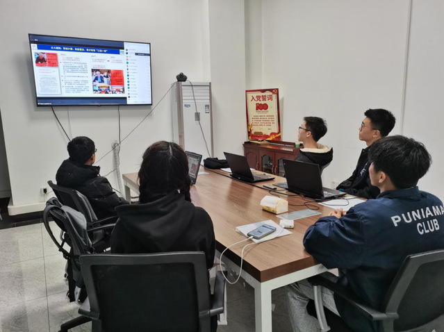 图为 学生骨干线下观看学习