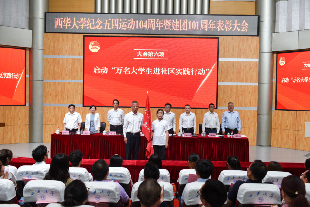 “万名大学生进社区实践行动”在会上启幕,刘树根为大学生社区实践志愿服务队代表授旗。下一步,学校将发挥实践育人在“大思政”工作体系和“三全育人”工作格局中的重要作用,推动社会实践活动内涵化、规范化、常态化、长效化发展。
