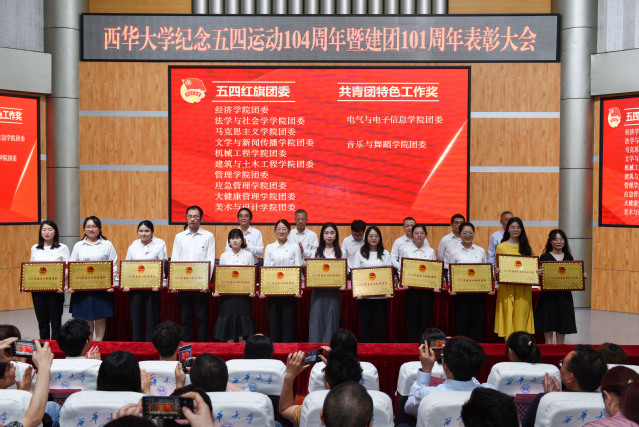 大会在《光荣啊,中国共青团》的高昂歌声中圆满结束。党政办公室、党委宣传部、党委统战部、党委学工部、党委研工部等部门主要负责人参加会议并为获奖集体和个人颁奖。相关职能部门负责人、各学院分管学生工作负责人、学工办主任、团委负责人及获奖学生代表共300余人参加会议。